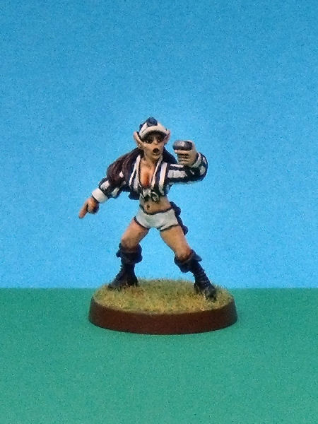 Finally, I also have a referee model to accompany the team. Since the clunky ‘I’ve got my eye on you’ rule was dropped from Blood Bowl, referee models don’t have any practical use in the game any more, but, like models for the support staff, they are fun to have on the sidelines anyway, and I have a referee model for each of my teams. However, only this one and the Wicked Elf are currently painted.