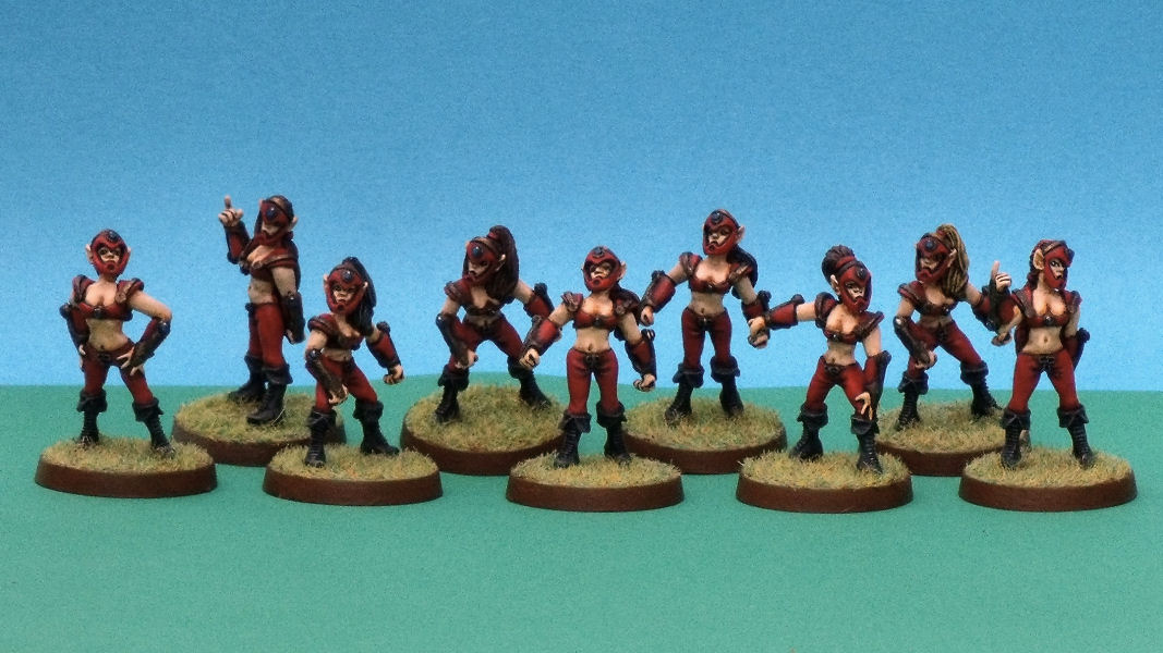 With the position players costing vast amounts to hire, Elf teams tend to start out with a lot of ordinary Line-elves. Shadowforge only do five different sculpts, so there are, again, a few duplicates here. As with the catchers, the the duplicate models all have different hair colours.